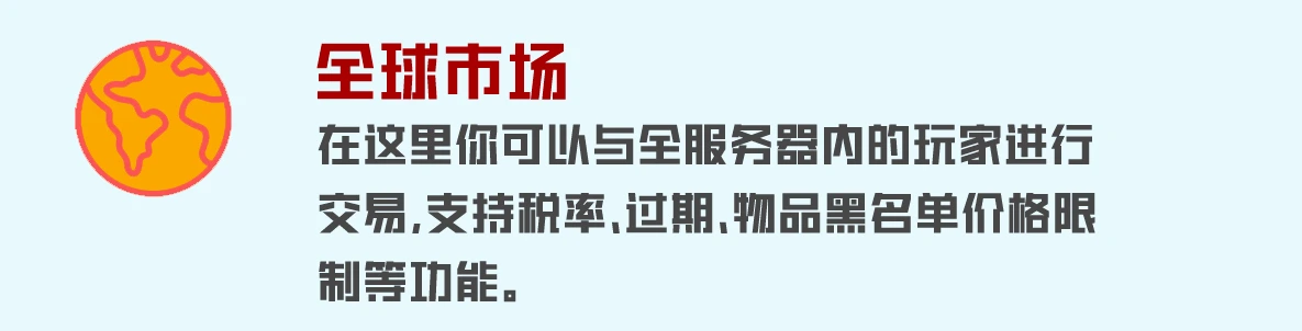 全球市场|拍卖行|个人商店|玩家邮箱|高度可自定义
